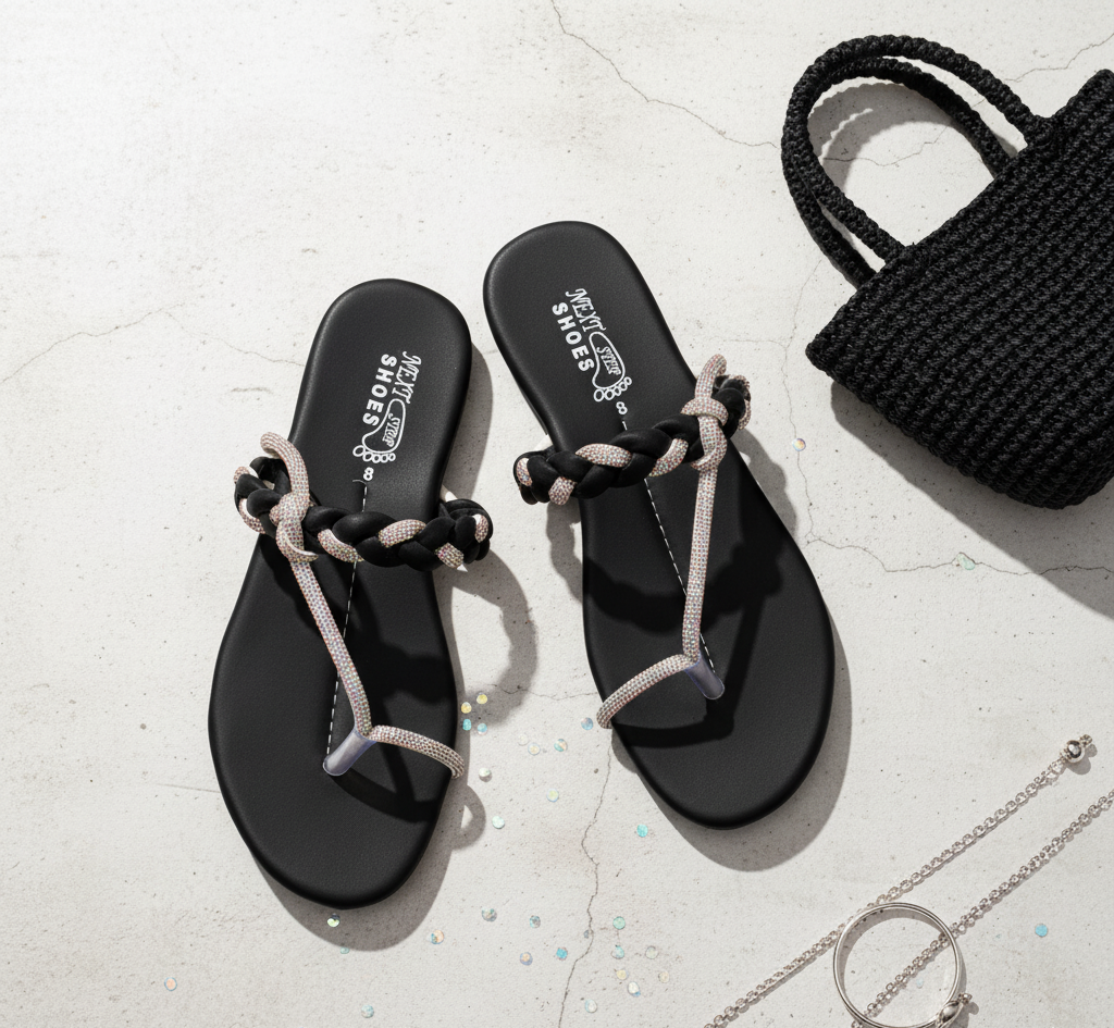 Step into luxury with GlamHivePK™ Black Satin Rhinestone Kolhapuri Chappals, crafted to perfection for women who love elegance and sparkle. The satin finish and rhinestone detailing make it a standout choice for formal occasions, festive wear, or evening outings — where comfort meets class.